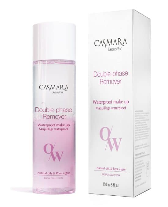 Casmara Double-phase Remover is een tweefase make-up remover (water en olie) met een geavanceerde natuurlijke formule die make-up verwijdert van de meest gevoelige delen van het gezicht, zoals de oogcontour, oogleden, wimpers en lippen. Het is een formule, zonder parfum of alcohol, geschikt voor alle huidtypes, inclusief de gevoelige huid, zeer effectief bij het verwijderen van waterproof make-up, eyeliners en long-lasting lipsticks.