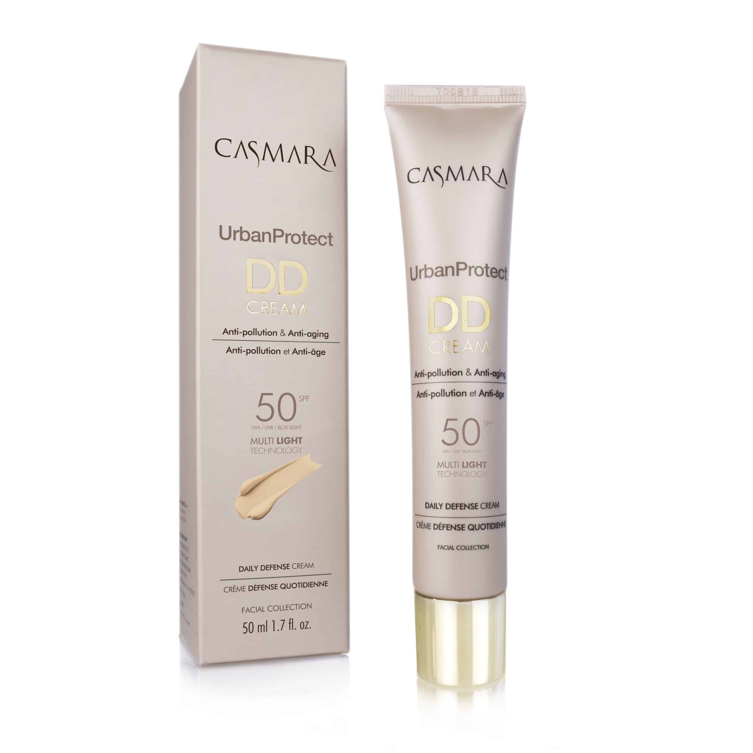 Casmara Laboratories heeft een serie producten ontwikkeld voor dagelijkse bescherming tegen UVA-, UVB-straling, kunstlicht, milieuvervuiling en huidveroudering. De DD Cream Urban Protect biedt een innovatief schild met een vleugje kleur. Dankzij de krachtige anti-vervuiling en anti-aging ingrediënten zoals PURE BAMBOE, GLASS DIAMOND, AMANDELOLIE, GINSENG EN KAMILLE-EXTRACTEN, wordt optimale bescherming en verzorging geboden. Deze fijne crème neutraliseert en voorkomt de absorptie van schadelijke deeltjes en toxinen die de huid beschadigen (luchtvervuiling), revitaliseert uw teint en verhoogt de helderheid van de huid. Deze final step van de dagelijkse verzorging werkt zowel bij mannen als vrouwen en is verkrijgbaar in drie kleuren die zich aanpassen aan de huidskleur.